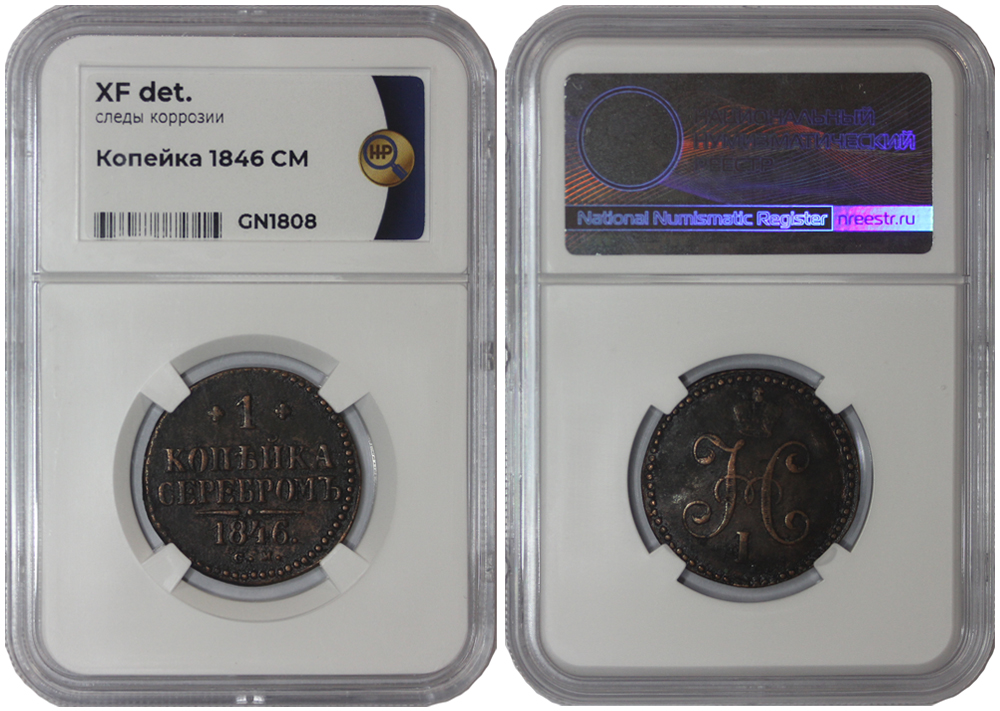 Россия 1 копейка, 1846 год. СМ. Слаб ННР
