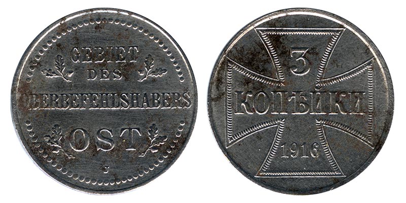 Россия 3 копейки, 1916 год. Оккупация, Двор J