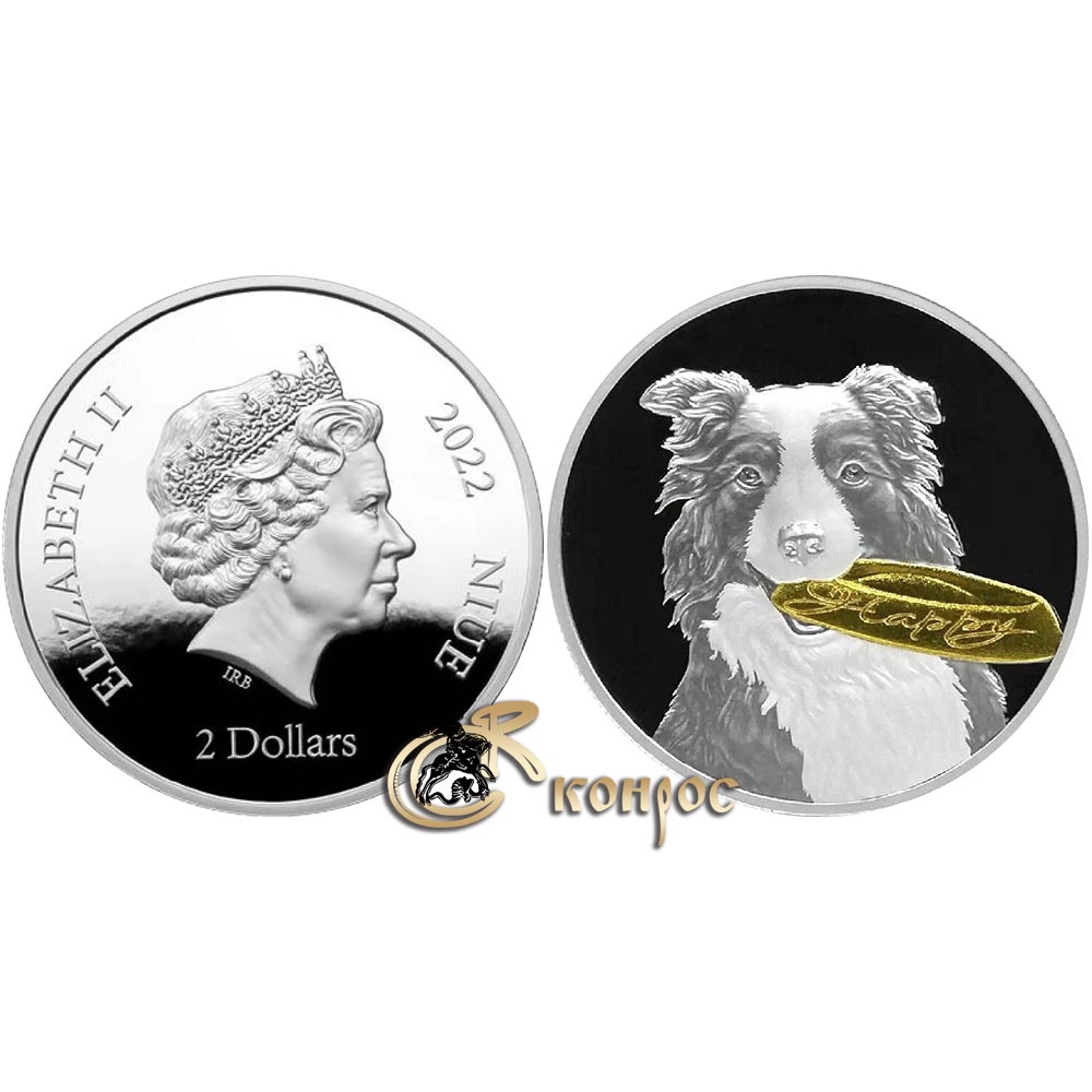 Ниуэ 2 доллара, 2022 год. Бордер-Колли. Ag999, 31,1 гр