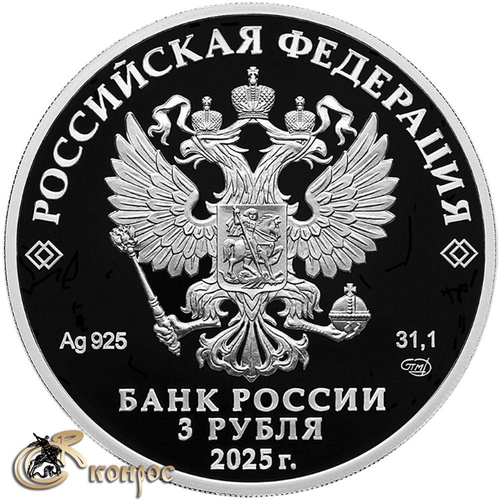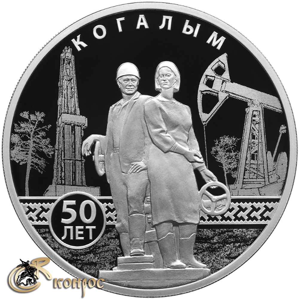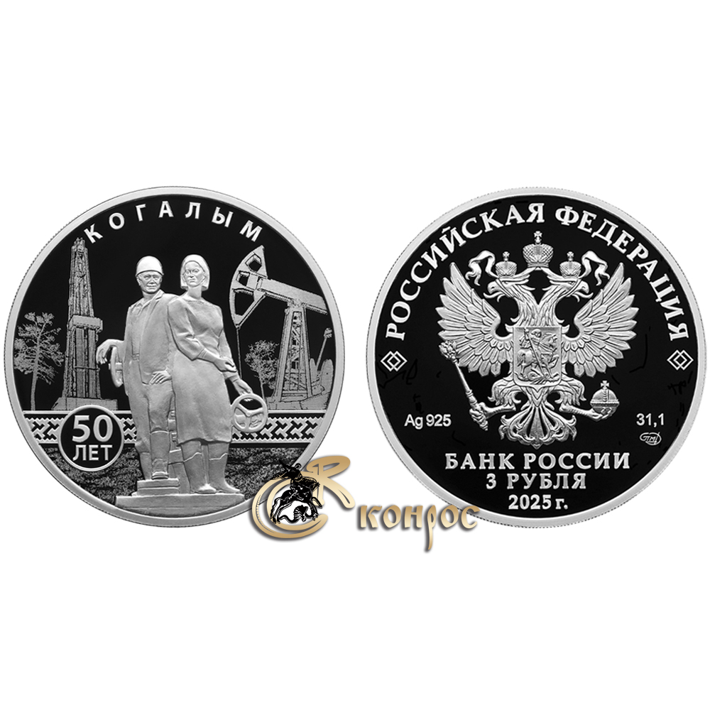Россия 3 рубля, 2025 год. 50-летие основания города Когалым. СПМД. Ag925. 31,1 гр
