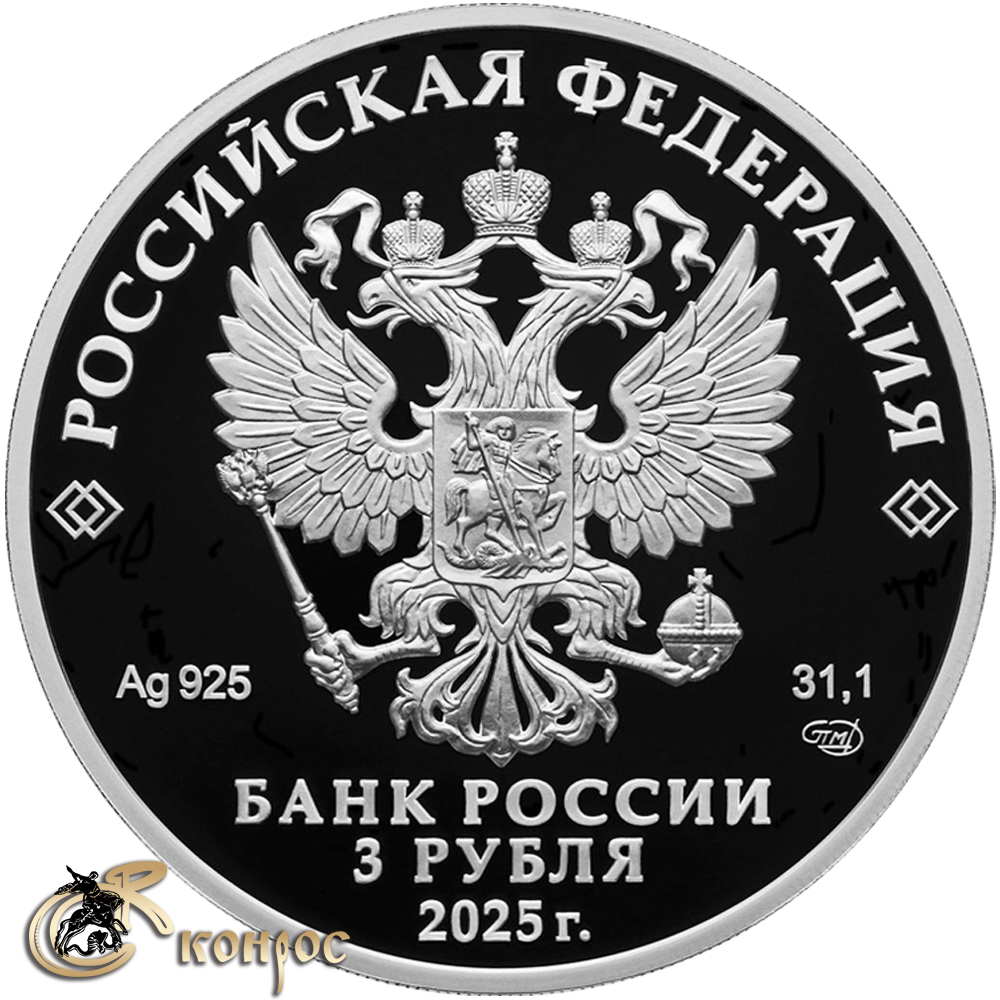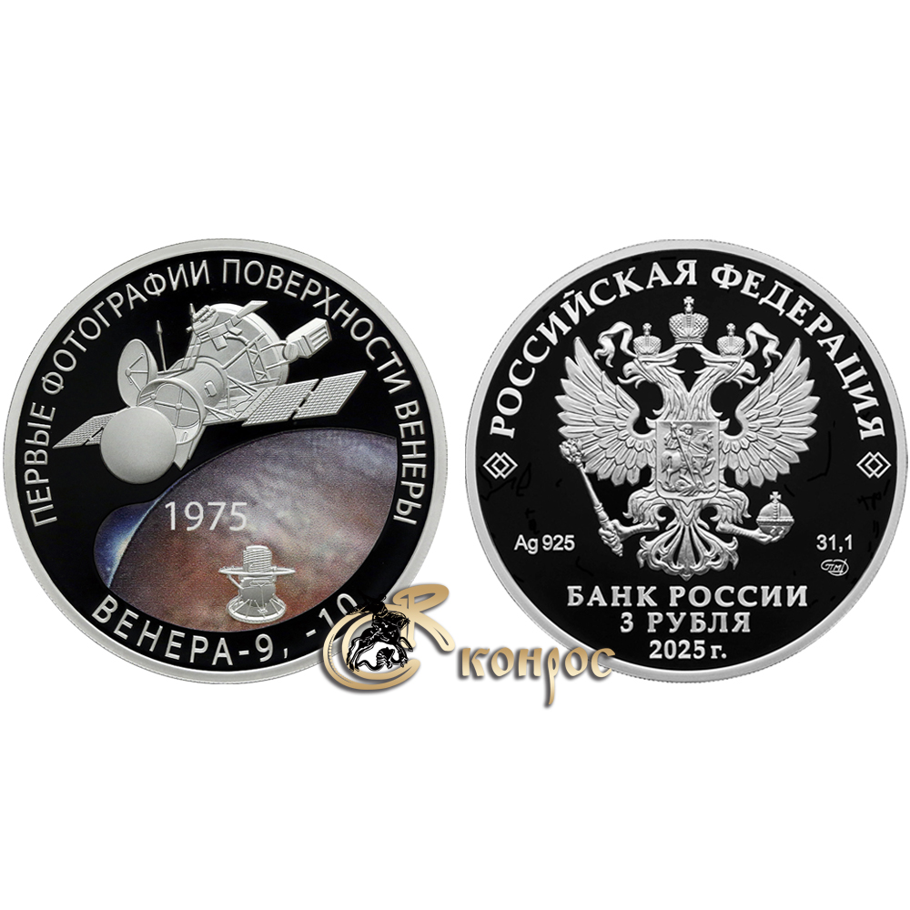 Россия 3 рубля, 2025 год. 50-летие мягкой посадки спускаемых аппаратов на Венеру и получения панорамных изображений поверхности Венеры. СПМД. Ag925. 31,1 гр