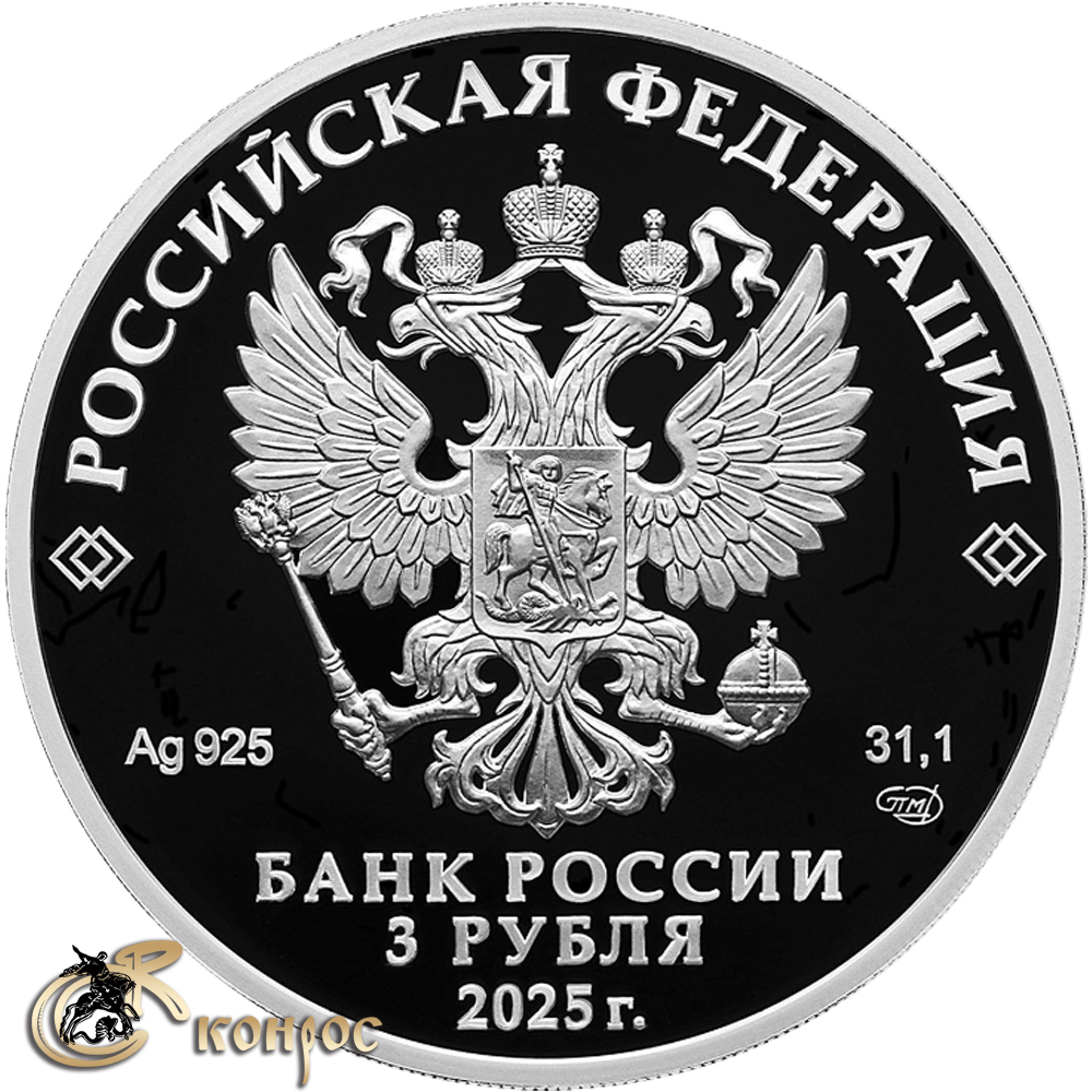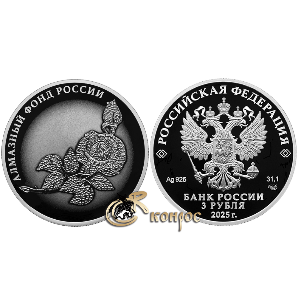 Россия 3 рубля, 2025 год. Алмазный фонд России. Роза. СПМД. Ag925. 31,1 гр