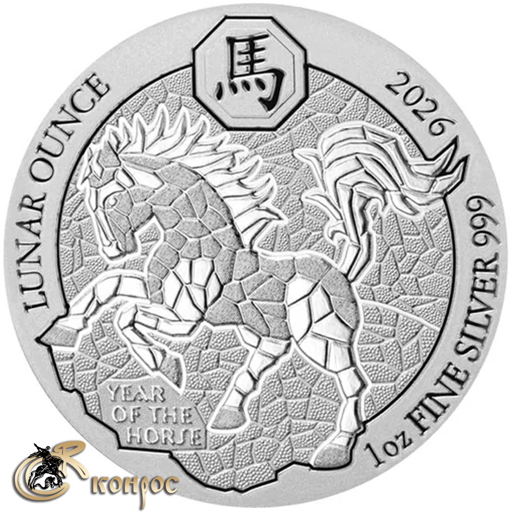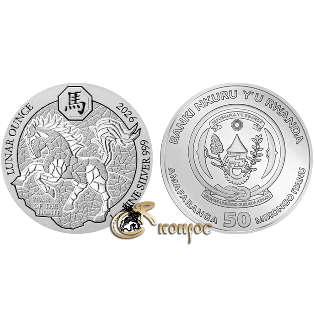 Руанда 50 франков, 2026 год. Лунар. Год лошади. Ag999. 31,1 гр