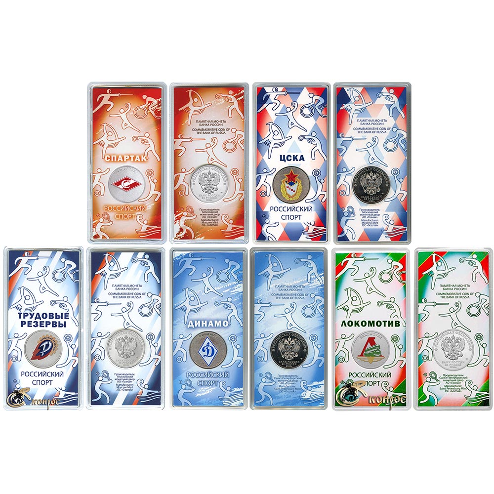 Набор монет. Россия 25 рублей, 2025 год. Российский спорт. Динамо, Цска, Спартак, Локомотив, Трудовые Резервы. В специальном исполнении