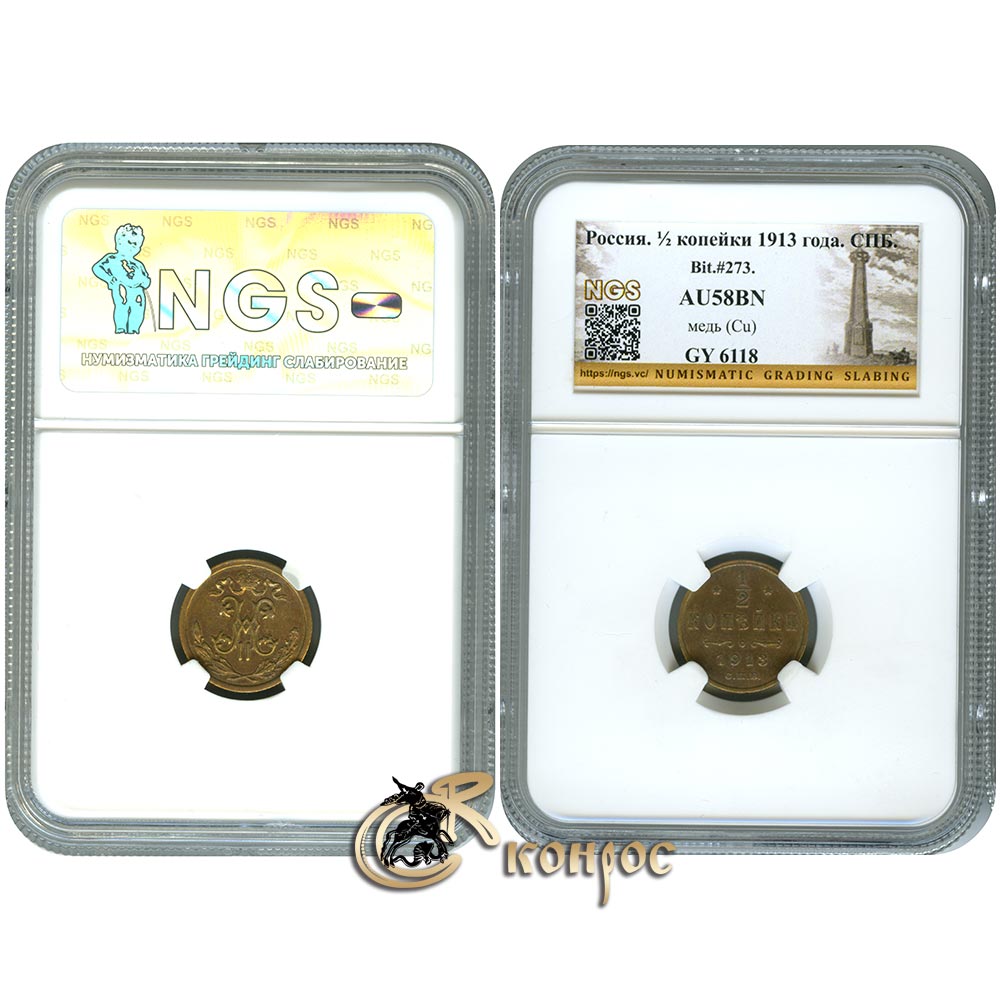 Россия 1/2 копейки, 1913 год. СПБ. Слаб NGS. AU58BN