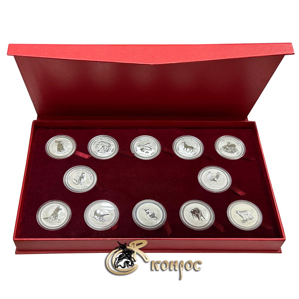 Набор монет. Австралия 1 доллар, 1999-2010 года. Лунар. Лунный календарь. (12 шт.). Ag999