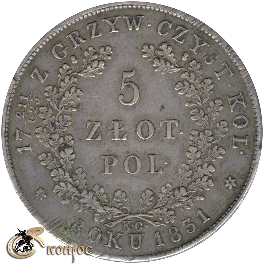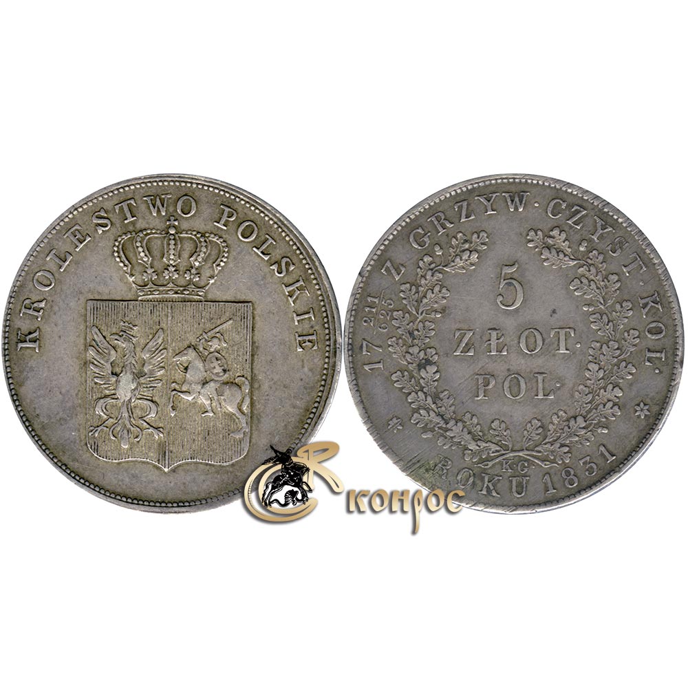 Польша 5 злотых, 1831 год. Ag868