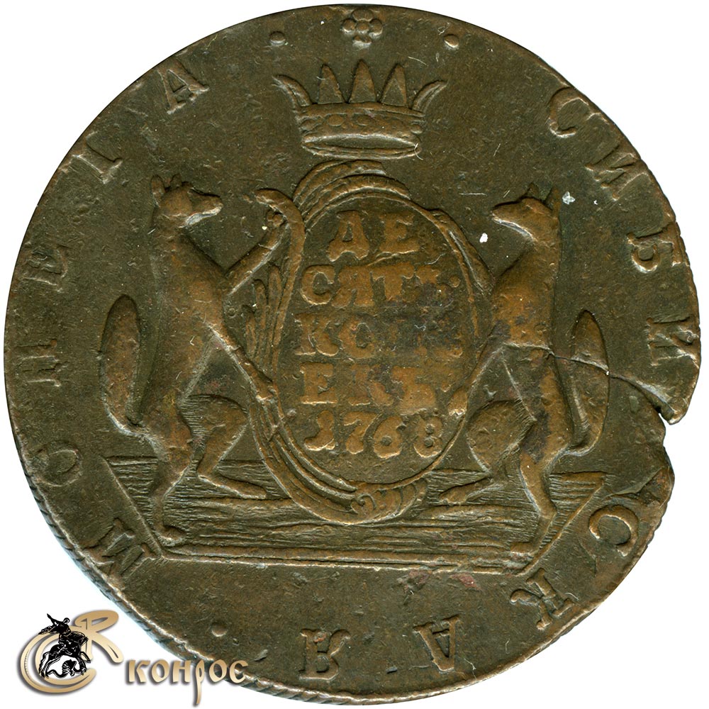 Россия 10 копеек, 1768 год. КМ. Сибирь