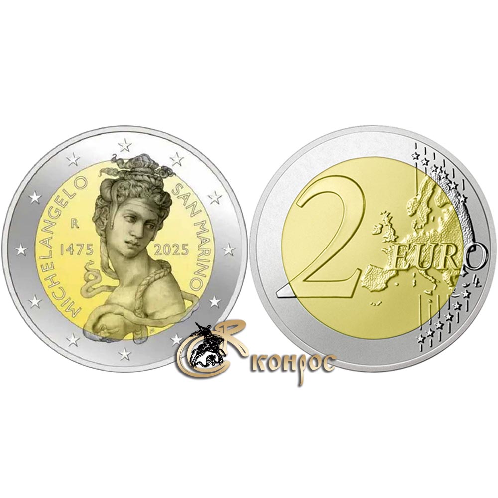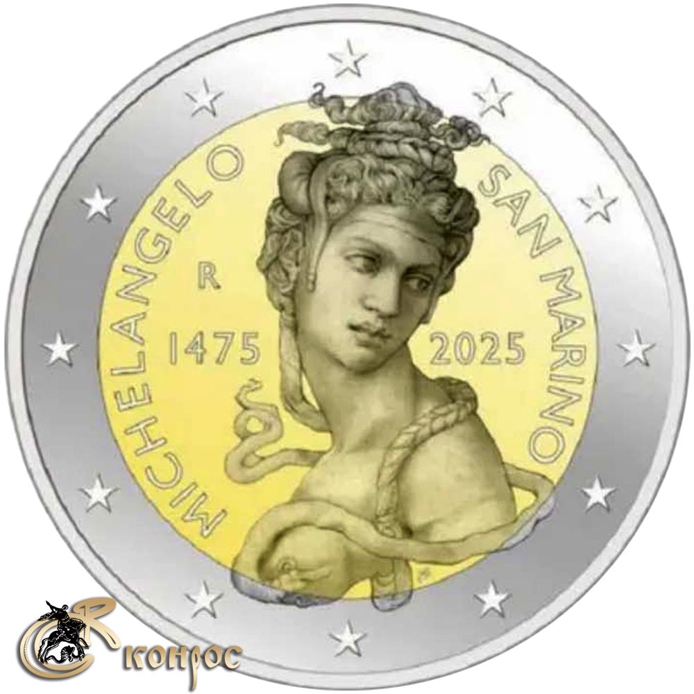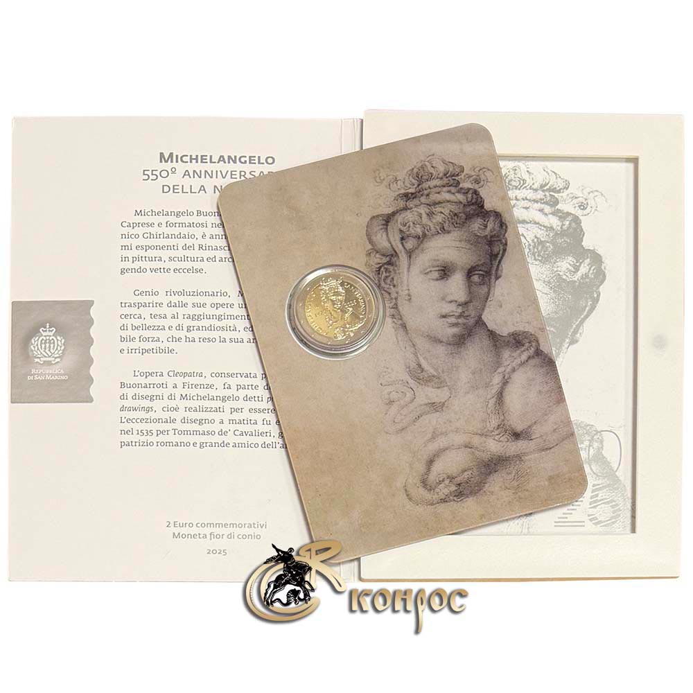 Сан-Марино 2 евро, 2025 год. Микеланджело. Блистер