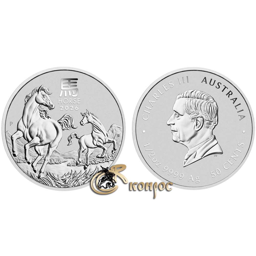 Австралия 1/2 доллара, 2026 год. Лунар. Год лошади. Ag999. 15,55 гр