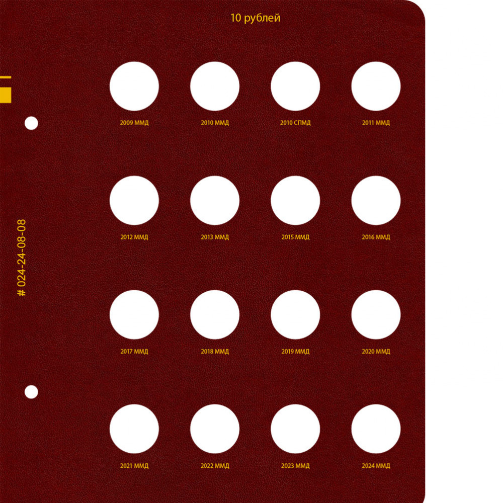 Лист №8 на 16 монет 10 рублей в альбом Монеты РФ регулярного выпуска с 1997 года по номиналам. Альбо Нумисматико, #024-24-08-08