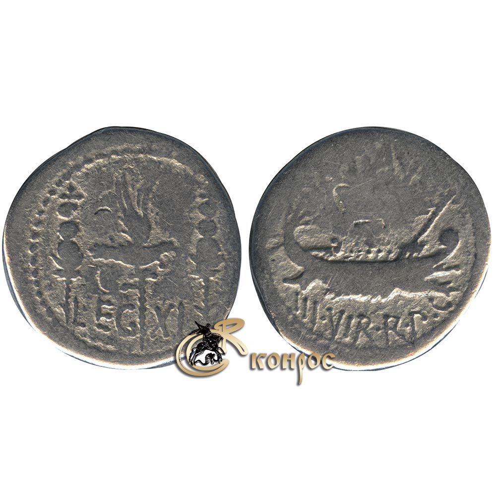 Римская республика. Денарий. Марк Антоний. Одиннадцатый легион. 32-31 г до н.э. Ag