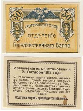 Бона. Россия 50 копеек. 1918 год. Екатеринбургское ОГБ