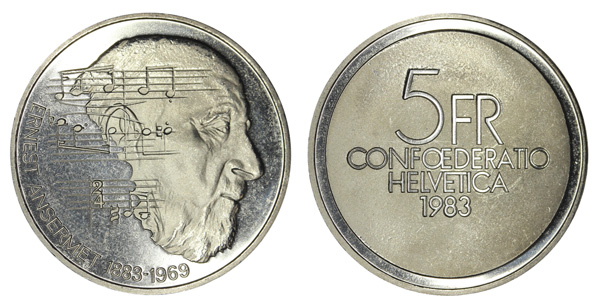 Швейцария 5 франков, 1983 год. Эрнест Ансермет