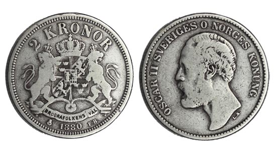 Швеция 2 кроны, 1880 год