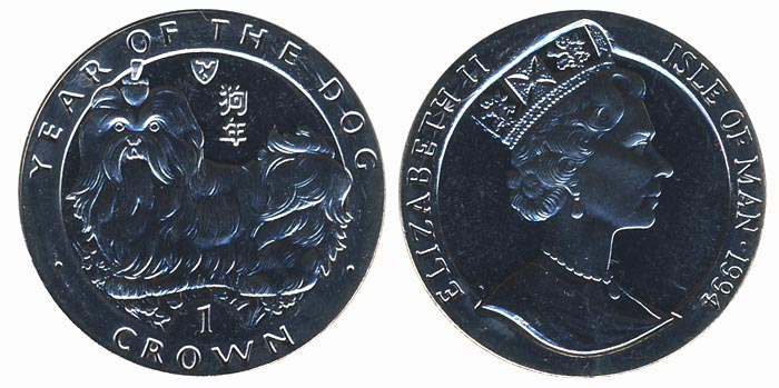 Остров Мэн 1 крона, 1994 год. Год собаки