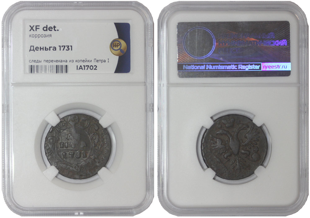 Россия. Денга, 1731 год. Следы перечекана. Слаб ННР
