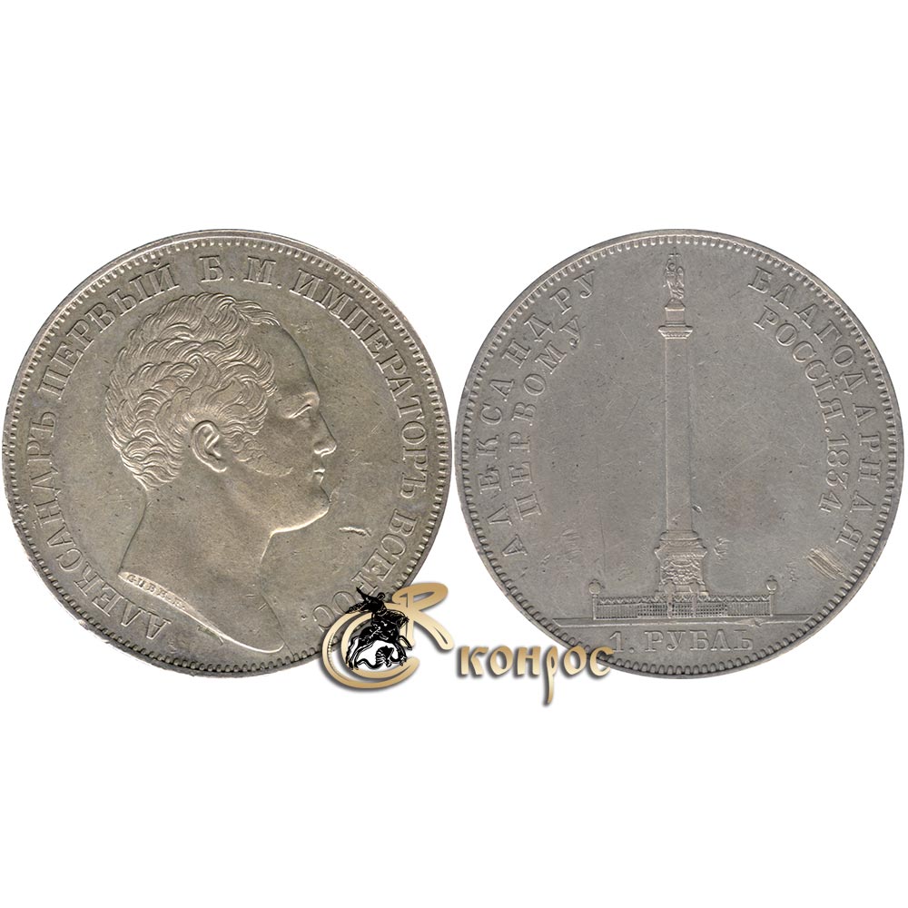 Россия 1 рубль, 1834 год. Юбилейный. На открытие Александровской колонны. Ag868