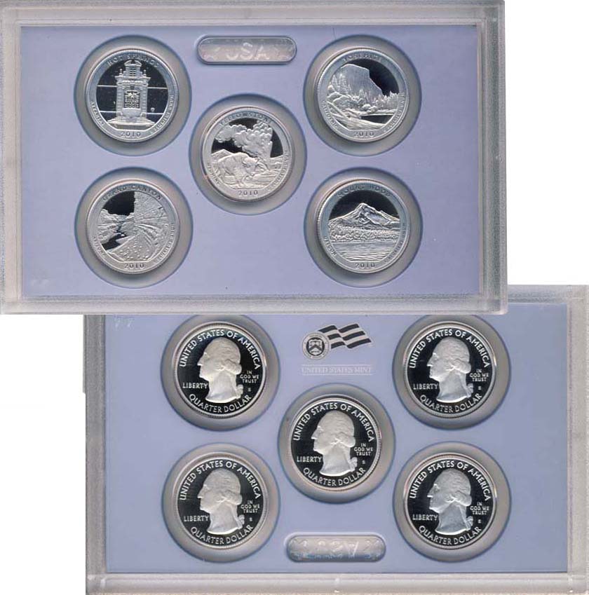 Набор монет. США 25 центов, 2010 год. (5 шт.)
