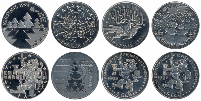 Набор монет. Ниделанды 5 экю, 1994-1997 года. Рождество. (4 шт.)
