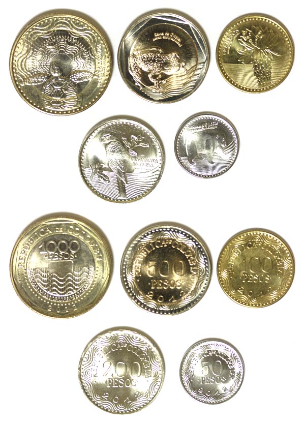 Набор монет. Колумбия, 2012 год. (5 шт.)