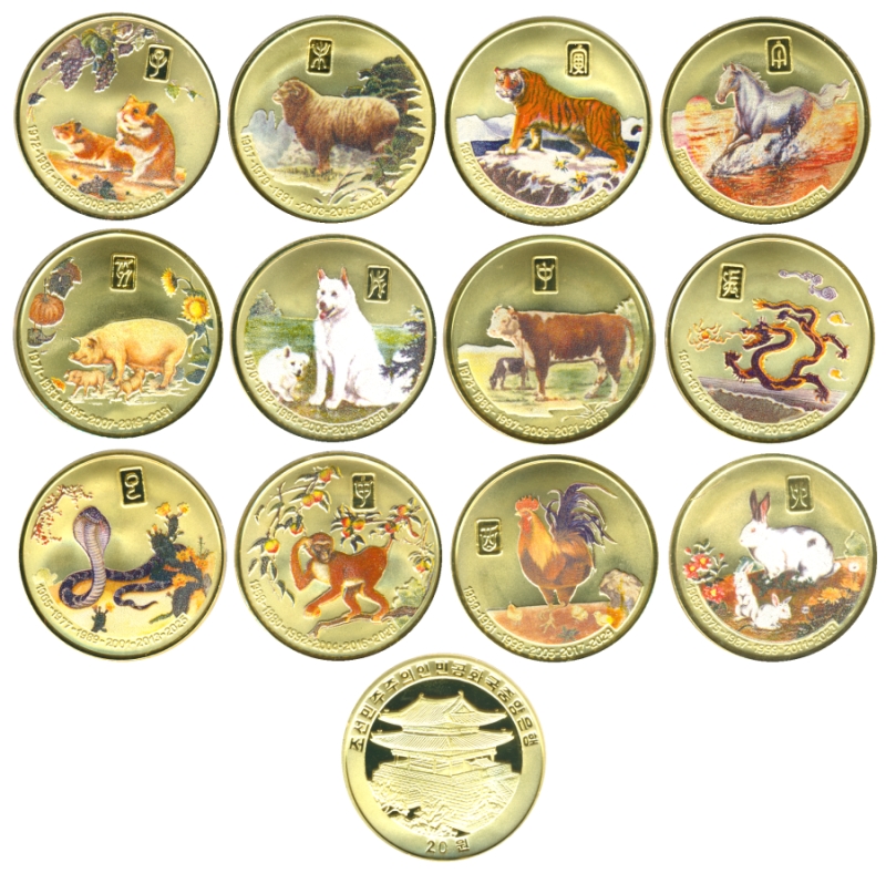 Набор монет. Северная Корея 20 вон. Лунный календарь. (12 шт.)