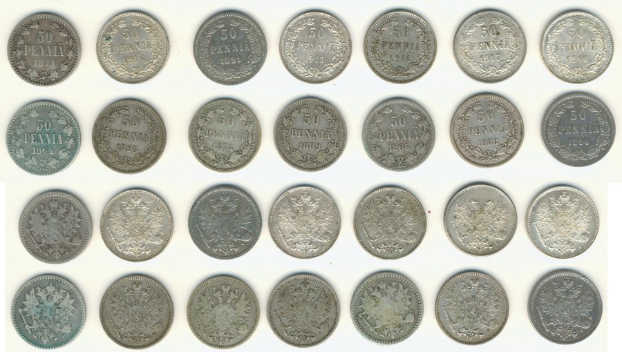 Набор монет. Россия 50 пенни, 1864-1917 год. (14 шт.)