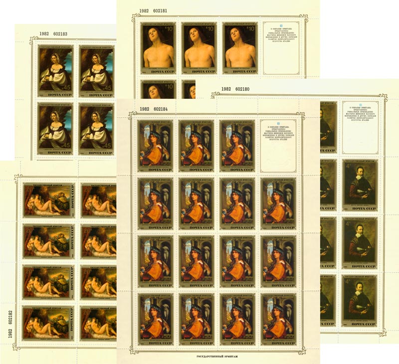 Почтовые марки. СССР, набор малых листов 1982 год. Государственный Эрмитаж (5шт.)