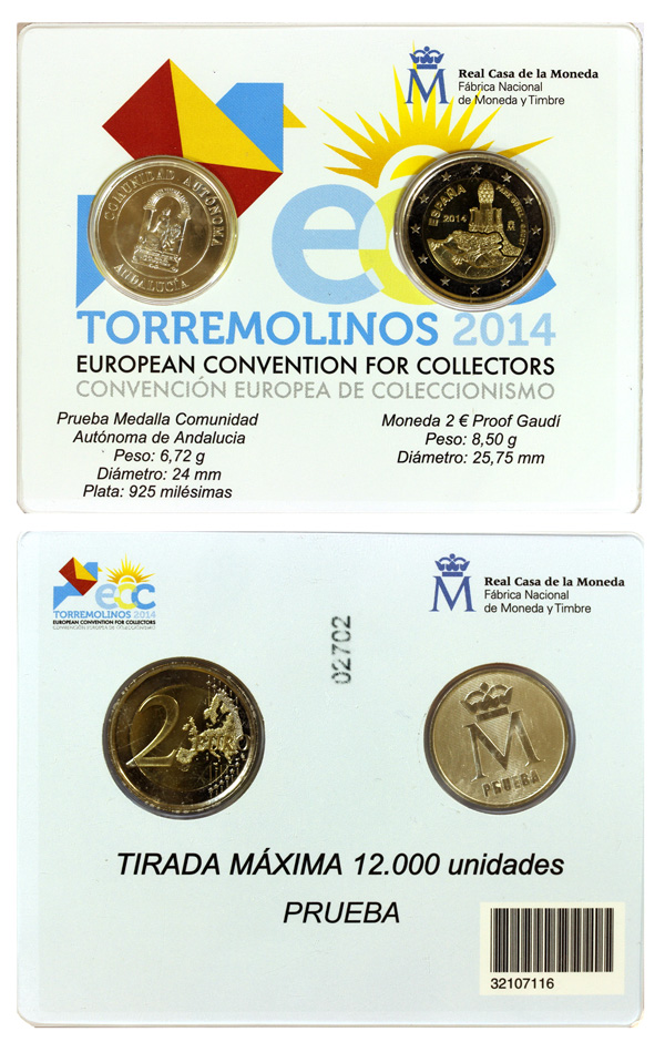 Испания 2 евро, 2014 год. Парк Гуэля+жетон