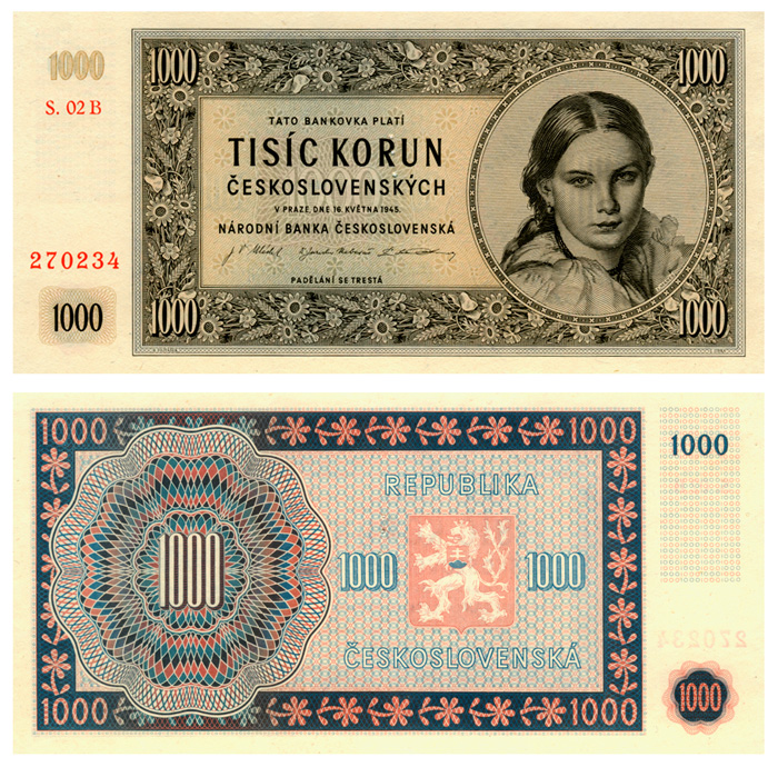 Бона. Чехословакия 1000 крон, 1945 год. Образец
