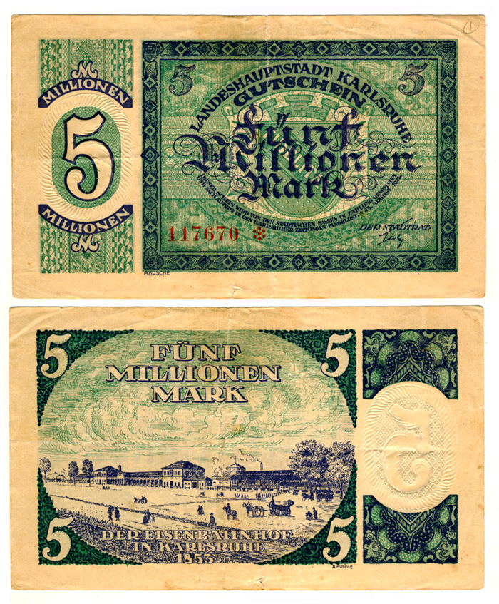 Бона. Германия 5 000 000 марок. 1923 год. Карлсруэ