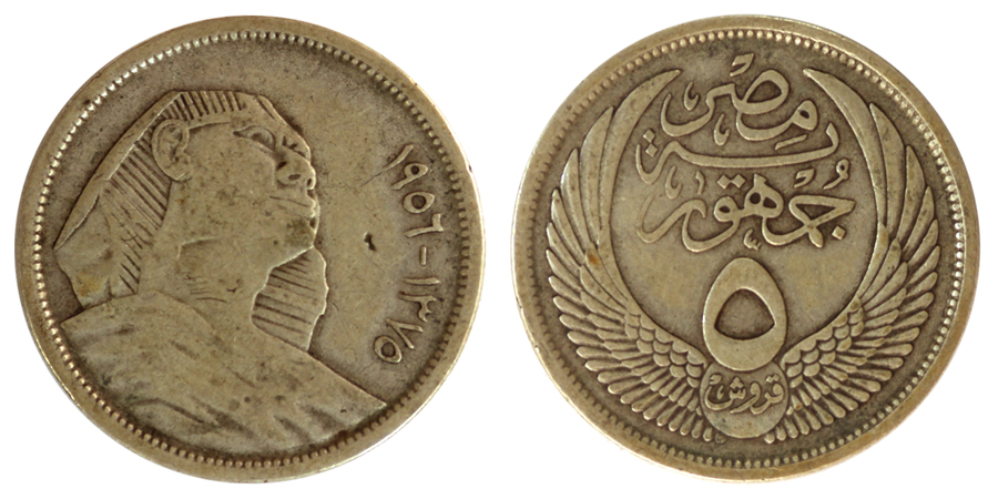 Египет 5 пиастров, 1956 год