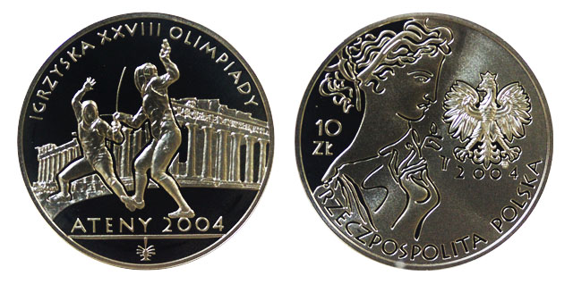 Польша 10 злотых, 2004 год. Олимпиада в Афинах. Фехтование