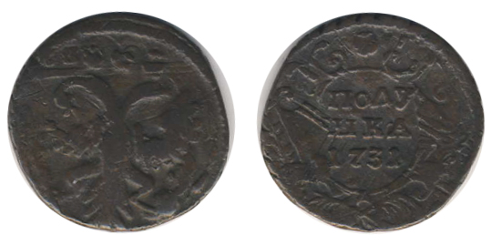 Россия. Полушка, 1731 год. Орел 1730. F+