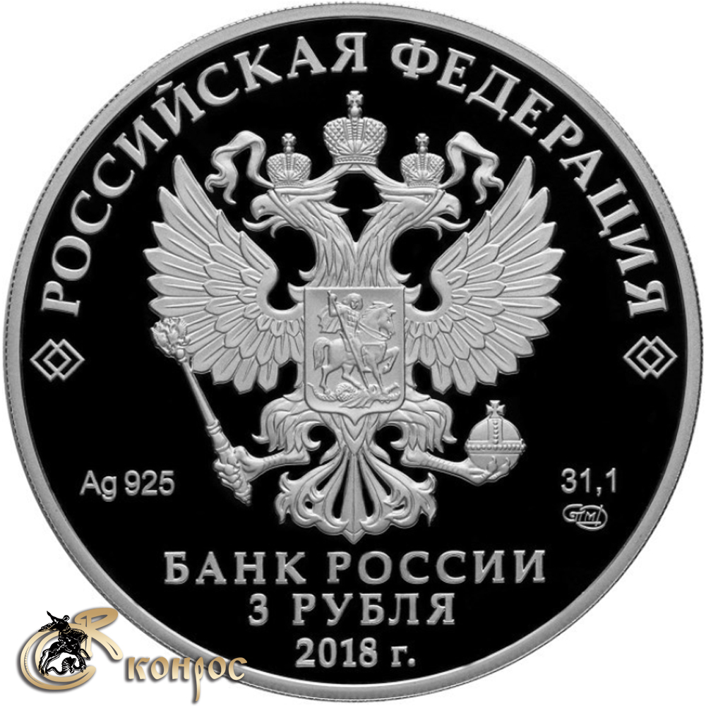 Россия 3 рубля, 2018 год. 400-летие основания г. Новокузнецка. СПМД. Ag925. 31,1 гр