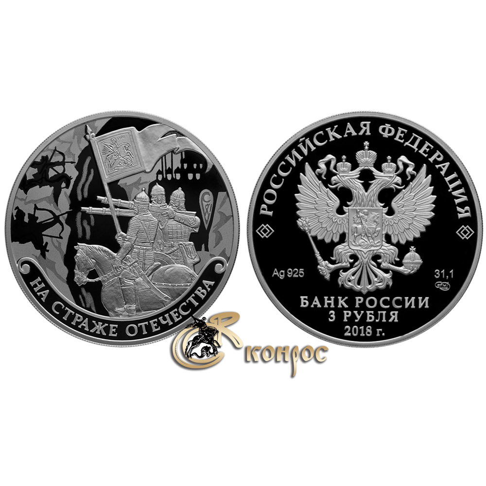 Россия 3 рубля, 2018 год. На страже Отечества. Древнерусские войны в доспехах. СПМД. Ag925. 31,1 гр