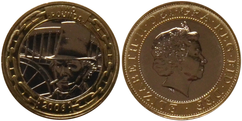 Великобритания 2 фунта, 2006 год. 200-летие Изамбарда Кингдома Брюнеля. Портрет