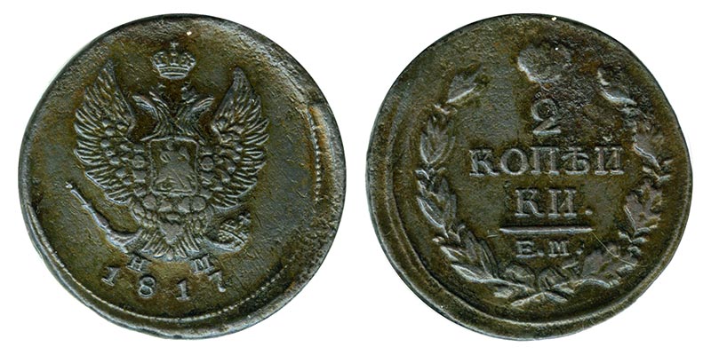 Россия 2 копейки, 1817 год. ЕМ НМ
